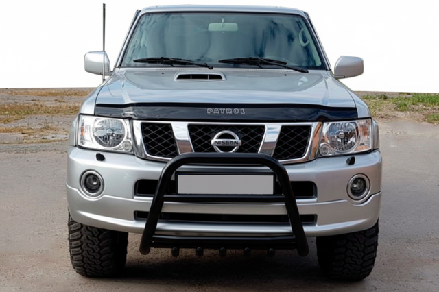 Кенгурятник QT007 Black (нерж) для Nissan Patrol Y61 1997-2011 гг, Nissan, Nissan Patrol Y61 1997-2011 гг, Кенгурятники и подножки -> Кенгурятники,